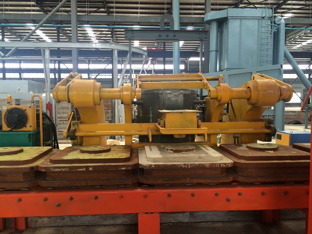 澆包的傾轉機構以包嘴為旋轉中心,使鐵水流始終對準砂箱的澆注口,無需橫向調整澆包位置和澆包高度。